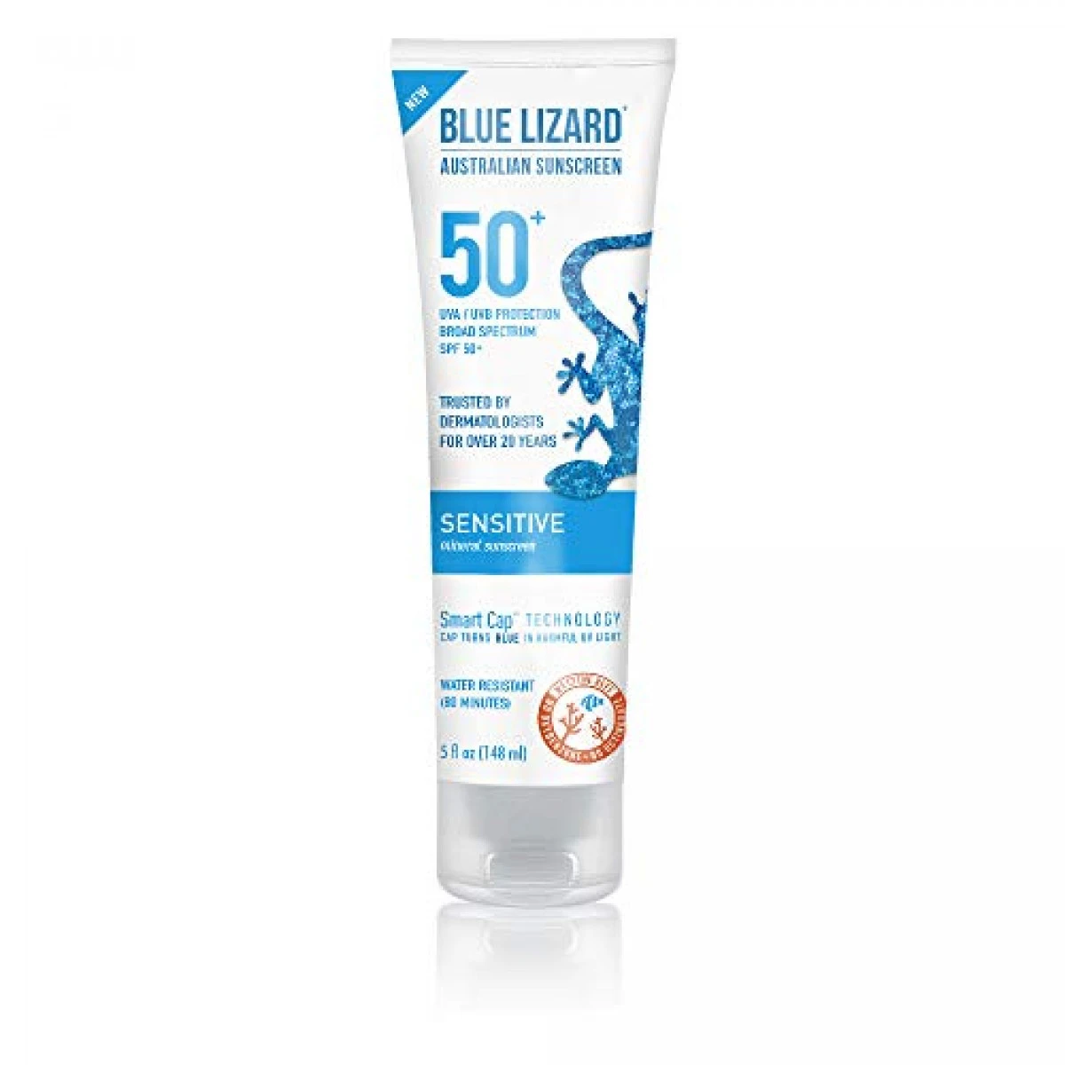 New! Sensitive mineral sunscreen with SPF 50+ protects your skin with BLUE LIZARD strongest UV protection yet. With 80 minutes of sweat and water resistance, you stay protected longer while swimming, during your run or whatever you love to do. This mineral formula uses zinc oxide and titanium Dioxide to protect your skin from harmful UVA and UVB rays without the use of potentially irritating chemical active ingredients. We love the Reef! To help protect fragile Reef ecosystems, our sensitive sunscreens contain no oxybenzone or Octinoxate. BLUE LIZARD is committed to spreading sun Safety awareness, and with their smart cap technology, you’ll always know when harmful UV rays are present. Watch the tube cap turn Blue in sunlight as a reminder to stay sun safe wherever you are. BLUE LIZARD Australian sunscreen has been trusted by dermatologists for over 20 years.