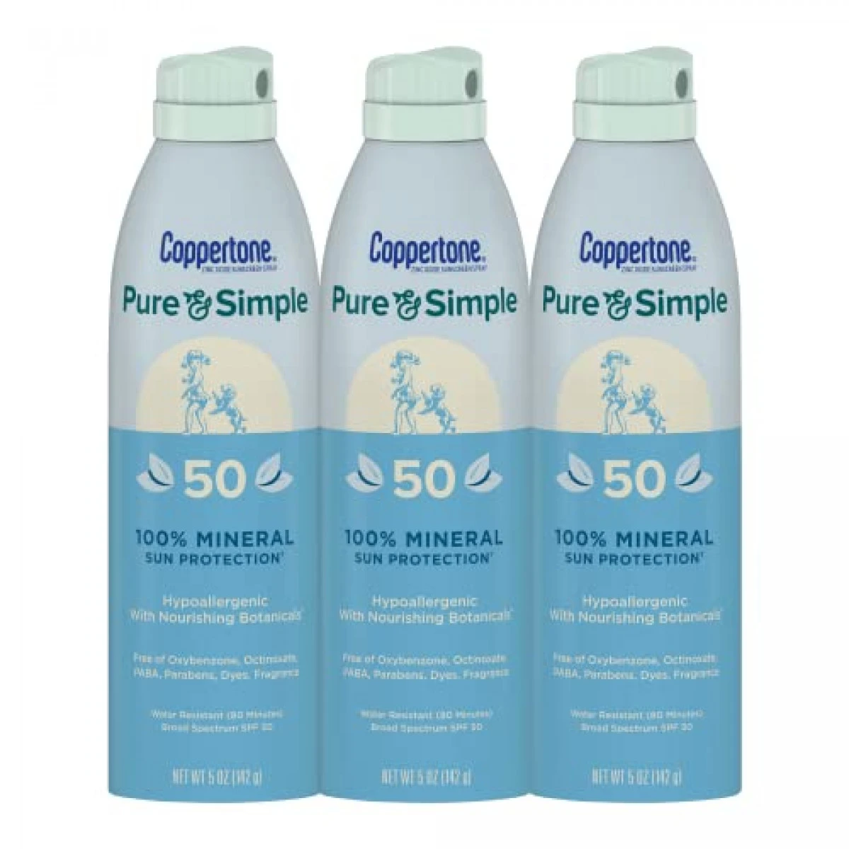 - Includes three 5 ounce bottles of Coppertone Pure and Simple Spray Sunscreen