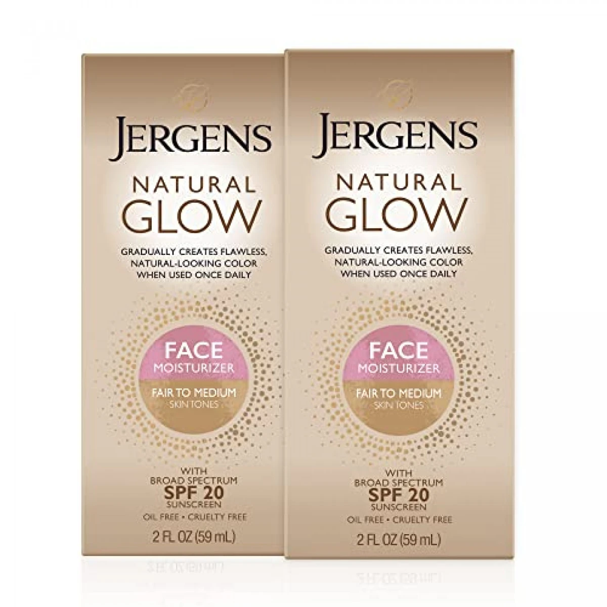 - SELF TANNING FACE SUNSCREEN – With Jergens Daily Moisturizer’s blend of nutrients and skin-tone enhancers, expect a beautiful, natural-looking facial tan within a week. Try going makeup free in 7 days!