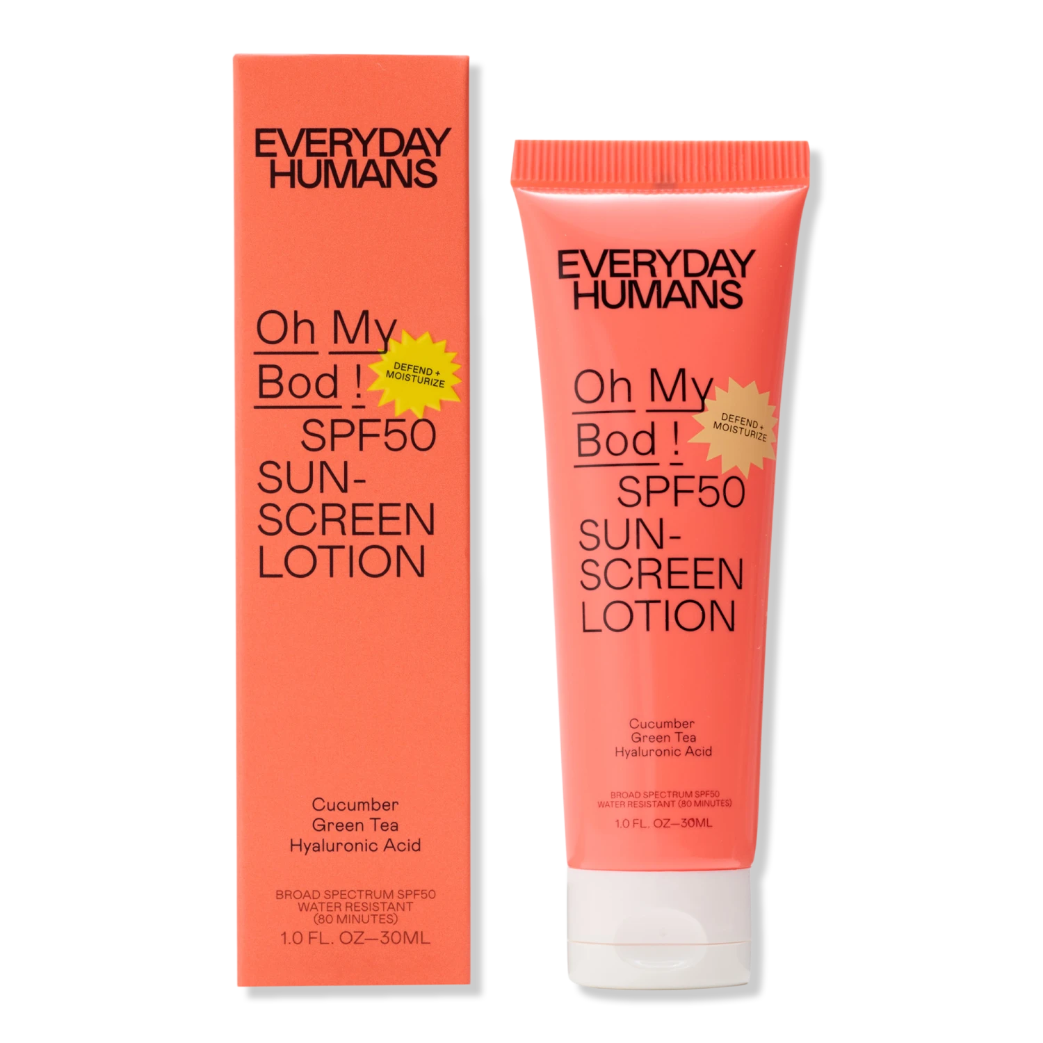 #### Benefits – Broad spectrum SPF50 shields against UVA (photoaging) and UVB (burning) rays. – Applies invisible, absorbs fast, and leaves zero white cast on light and dark tones. – Lightweight, non-greasy, non-sticky formula that suits all skin types. – Sweat and water-resistant up to 80 minutes. – Great for outdoor activities, beach trips, and as a daily body moisturizer. – Features a light, mild green tea scent. – 100% PETA certified cruelty-free and oxybenzone-free. – 35% post consumer recycled plastic packaging and certified certified Plastic Neutral. #### Key Ingredients – Homosalate 10%, Octocrylene 8%, Octyl Salicylate 5%, and Avobenzone 3% to absorb UV rays. – Cucumber fruit extract to calm, detoxify, and moisturize skin with its natural emollient properties. – Green tea extract to protect against environmental aggressors, soothe inflammation, and support the skin barrier. – Hyaluronic acid to replenish and lock in moisture. #### Formulated Without – Parabens – Sulfates – Phthalates – Mineral Oil – Synthetic Fragrance – Alcohol – PABA – Oxybenzone – Octinoxate
