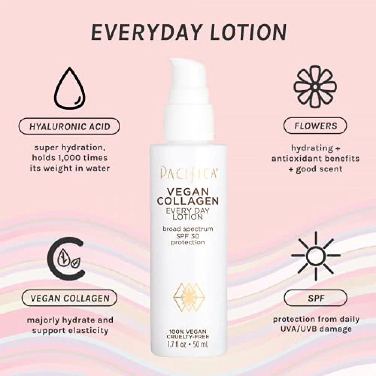 - LIGHTWEIGHT DAILY FACIAL LOTION is infused with vegan collagen*, aloe and flower extracts to hydrate skin daily.