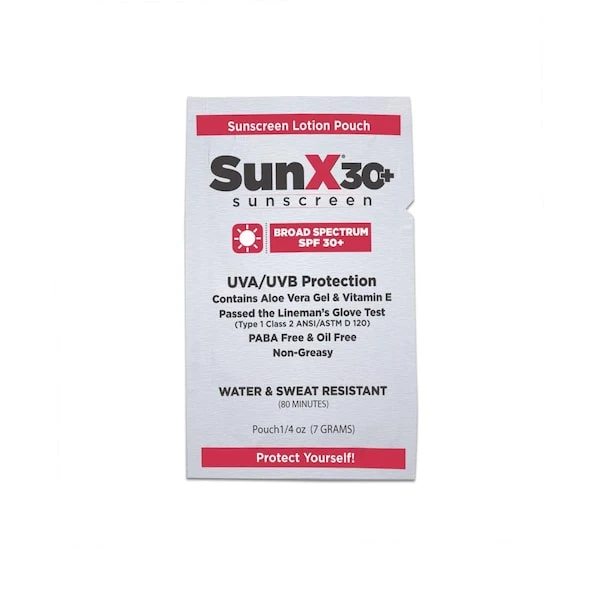 SunX SPF30 Sunscreen Lotion Packets Contains aloe vera gel & Vitamin E and broad spectrum sunscreen with UVA/UVB rated water & sweat resistant with max allowed duration time (80 minutes)PABA free & oil free