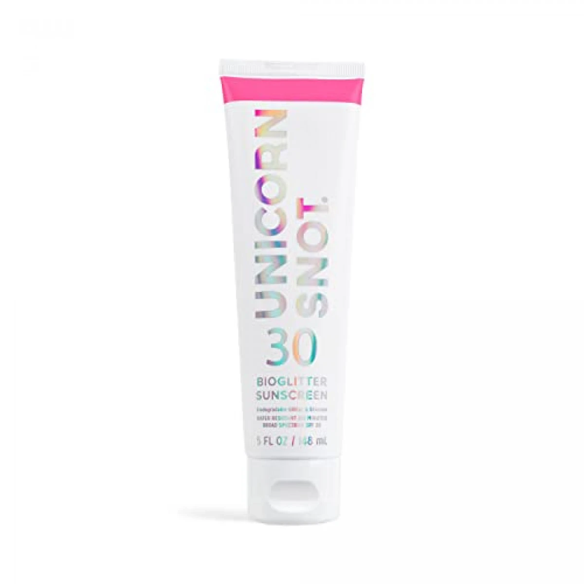 Unicorn Snot Bio Glitter Sunscreen Lotion – SPF 30 Face & Body Shimmer | UVA/UVB Protection, Biodegradable, Reef Friendly, Water Resistant | Vegan, Cruelty Free, Made in USA (Love Shack)